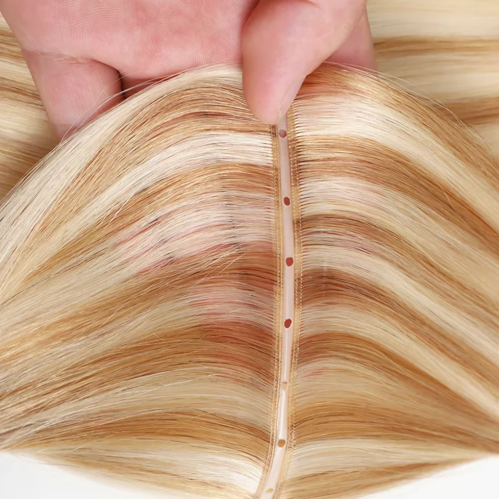 Natürliche Bewegung und Mischung:Die absichtliche Struktur des Schussfadens ahmt den natürlichen Haarwuchs nach, sodass er sich unsichtbar in vorhandene Locken einfügt und sich bei jeder Geste des Kunden mitbewegt, hier gibt es kein steifes, künstliches Finish.