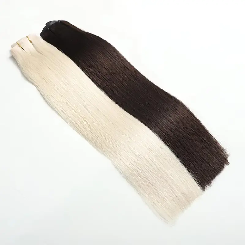 Lum Hair ist ein professioneller Hersteller und Lieferant von nahtlosen Clip-In-Haarverlängerungen mit 23 Jahren Erfahrung. Unsere Preise für Clip-in-Haarverlängerungen sind angemessen, bestehen aber aus hochwertigem Cuticle Remy-Echthaar, dessen Schuppenschicht in die gleiche Richtung ausgerichtet ist, was für ein glattes Gefühl, kein Verknoten und ein natürliches Aussehen sorgt. Sie sind sehr einfach zu tragen, fühlen sich angenehm an, sind wiederverwendbar und verleihen Ihrem Haar sofort Länge und Volumen.