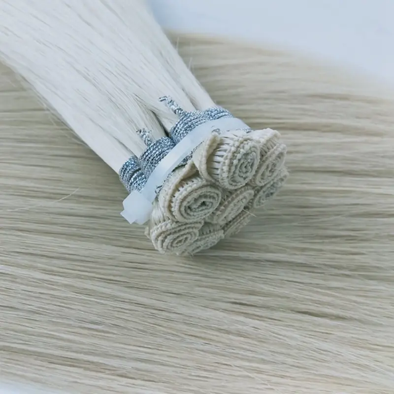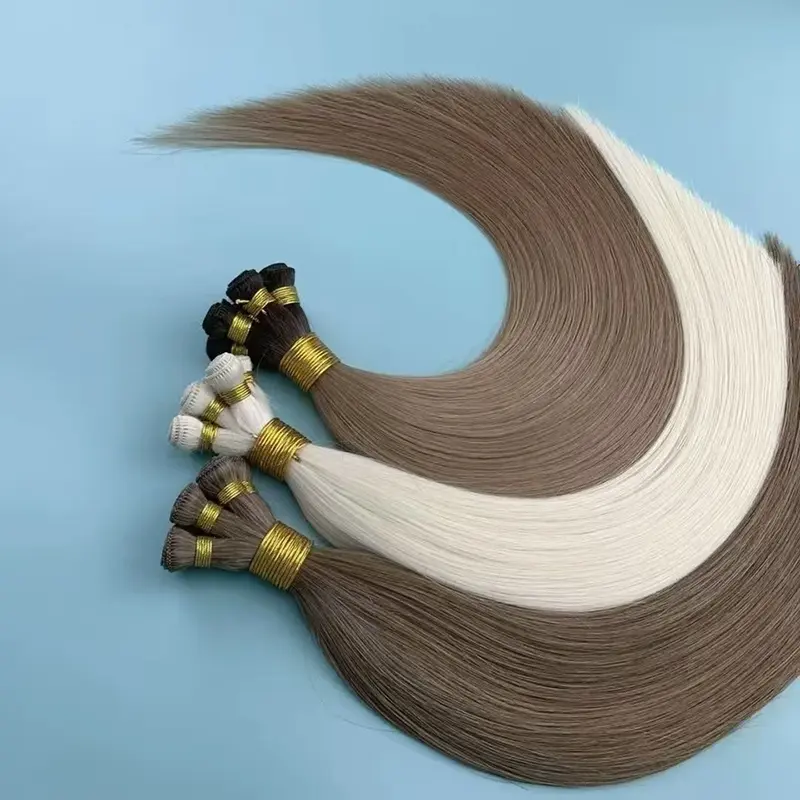 Jede handgebundene Schussverlängerung ist vollständig handgefertigt. Lum Hair verwebt jede Haarsträhne sorgfältig, um den Schuss ultradünn und flexibel zu machen, sodass er bündig an der Kopfhaut anliegt. Die sorgfältige Auswahl und Verflechtung jedes einzelnen Strangs sorgt für maximale Unsichtbarkeit – perfekt für High-End-Salons und Stylisten, die erstklassige Qualität verlangen. Diese handwerkliche Handwerkskunst ist es, die das natürliche Finish hervorhebt. Wir empfehlen jedoch nicht, die Schussfäden abzuschneiden, da dies zu Haarausfall führen kann. Handgebundene Tressen mit vollständiger Nagelhaut von Lum Hair vereinen Haltbarkeit mit Komfort und helfen Ihnen, das Erlebnis Ihrer Kunden mit luxuriösen Haarverlängerungen zu verbessern, die für eine lange Lebensdauer keine Kompromisse bei der Eleganz eingehen.