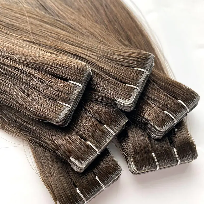 Lum Hair ist ein zuverlässiger Lieferant, Hersteller und Exporteur von nahtlosen Tape-In-Haarverlängerungen aus China und verfügt über 23 Jahre Berufserfahrung in der Herstellung von Echthaarverlängerungen. Bei der Herstellung all unserer unsichtbaren Tape-in-Extensions bleiben die vollständige Nagelhaut und die gleichmäßige Ausrichtung erhalten. Dadurch wird eine ultra-glatte Textur gewährleistet, die lange hält, sich nicht verheddert und sich nahtlos und natürlich an das eigene Haar anpasst. Diese Extensions sind so leicht, dass sie den ganzen Tag über getragen werden können, und können mehrfach wiederverwendet werden. Sie verleihen dem Haar sofort Länge und Volumen und sorgen für ein natürliches Aussehen und ein angenehmes Tragegefühl.